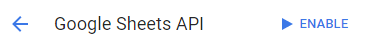 IMPORTANT: Once the API key has been created, Google Sheets will also need to be enabled from the Dashboard: